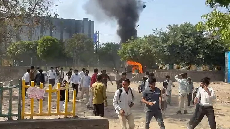 Tensions ran high as workers’ protest over wage hike turns violent in Noida
