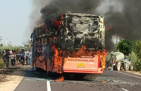 At least 20 dead as bus catches fire near Jaisalmer in Rajasthan -