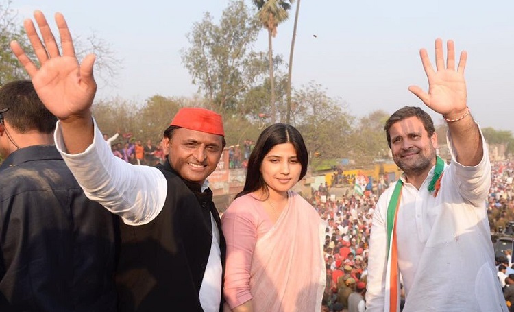 Congress leader Rahul Gandhi and SP chief Akhilesh Yadav jointly addressing an election rally in Jhansi, Uttar Pradesh said,”Muft Anaj Yoyana” was brought by the Congress government.After our government is formed, we will provide more good quality ration under it”.